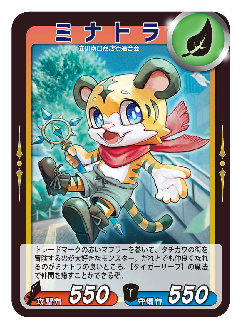立川南口商店街連合会が2022年に考案し制作した、商店街・商店をモンスター化したトレーディングカード。それぞれの商店街や商店の特徴を活かしたモンスターが設定されていて、簡単なルールでカードゲームとして対戦して遊ぶことができます。