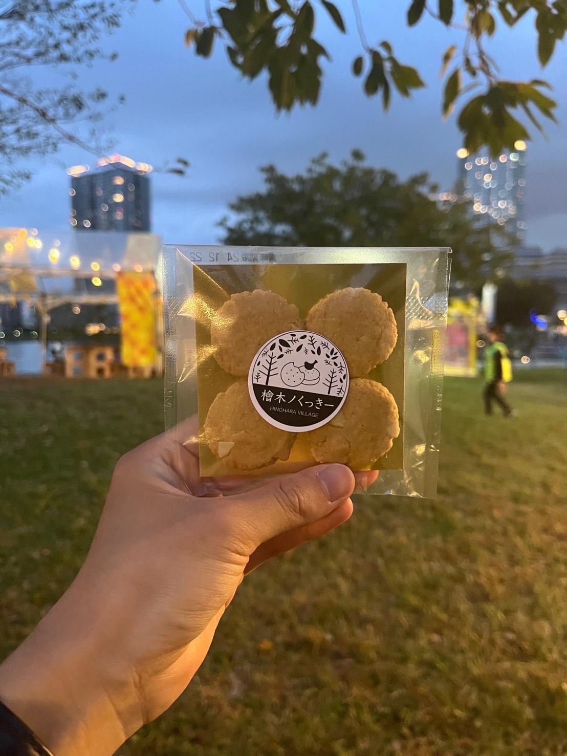 奥多摩三村(東京都檜原村・山梨県丹波山村・山梨県小菅村)の活性化を目的として、学生主体で発見した課題を解決するための商品やサービスを開発している「NPO法人ソーシャルアントレプレナー」。ヒノキを食用加工して練り込んだクッキーやコーヒーなどが並びます。