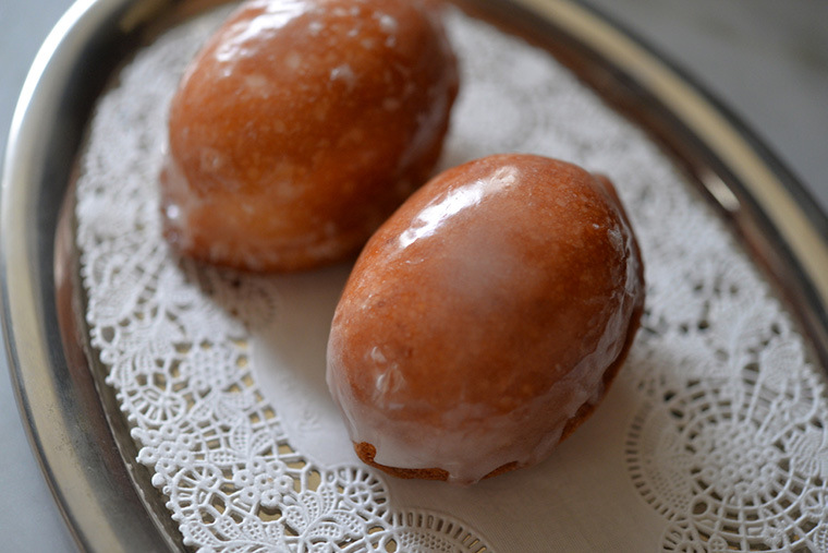- レモン汁と粉糖をよく混ぜ、グラス・ア・ローをつくり、冷めたケーキの上半分ほどにかける。200℃のオーブンで2分焼いて乾かし、完成。