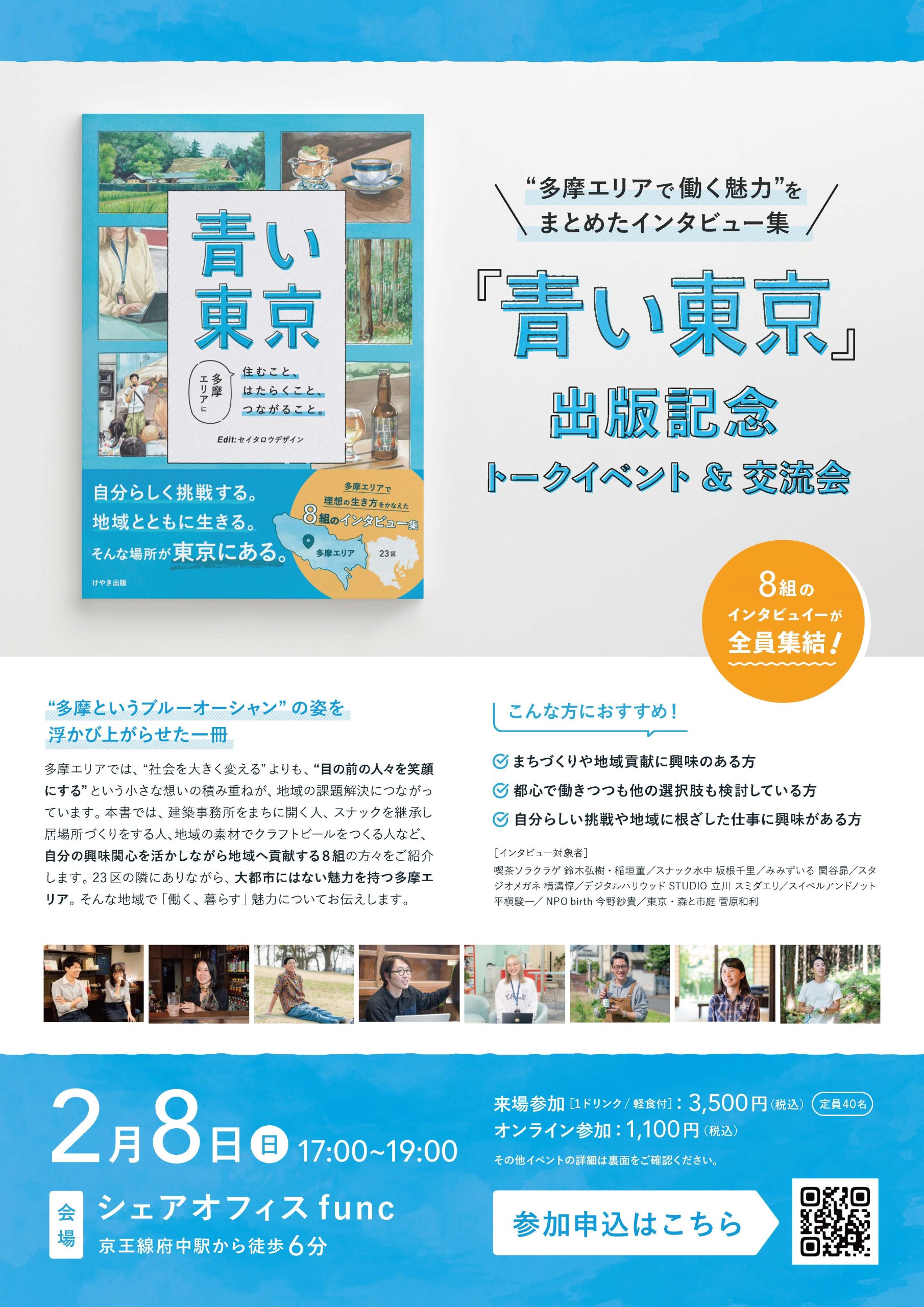 そして発売記念トークイベントに続き、2月8日(日)には、インタビューに登場した全8組が登壇するトークイベント&交流会が府中市にあるシェアオフィスfunc(ファンク)で開催されます。